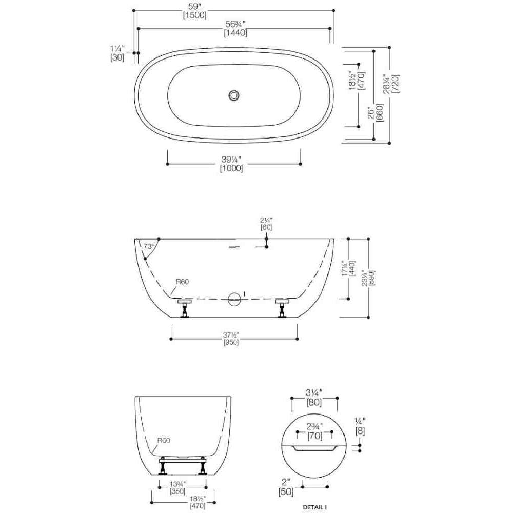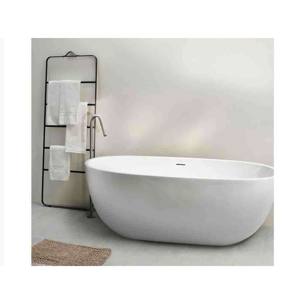 Siena·1 bezszwowa, jednoczęściowa, wolnostojąca wanna akrylowa z odpływem pośrodku oferuje przejściowy owalny kształt, który będzie pasował do każdego projektu łazienki.