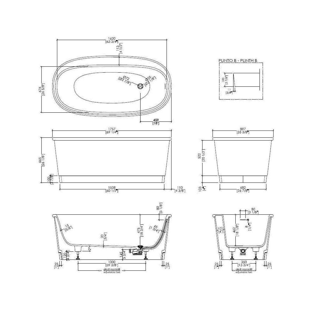 W zestawie odpływ z pokrywą White Tec Plus i syfonem. Cokół nie posiada ochronnego wykończenia.