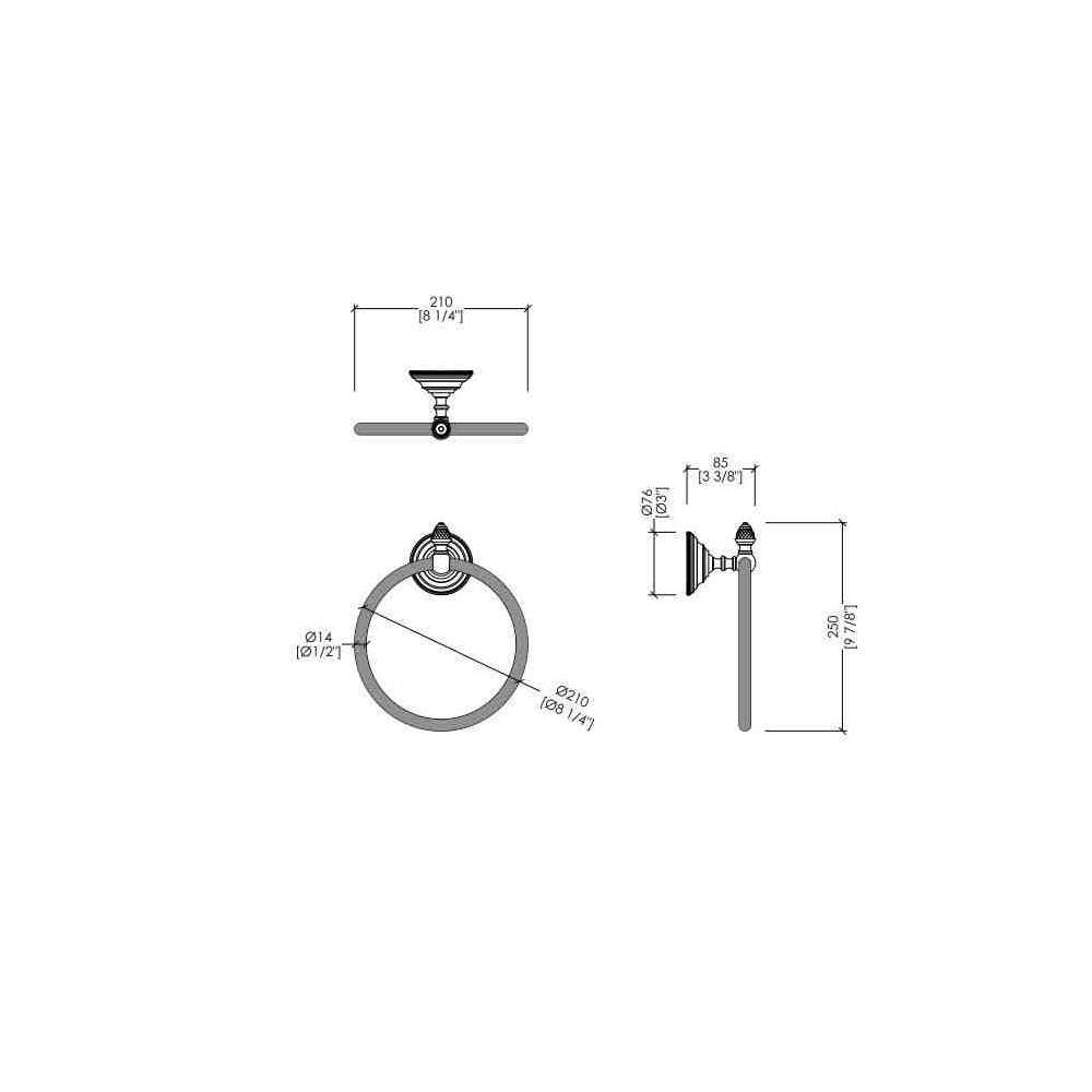 Pierścień na ręcznik. Dostępne w wykończeniach: chrom, jasne złoto, brąz i polerowany nikiel.