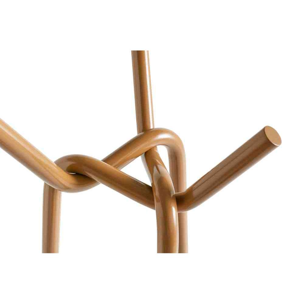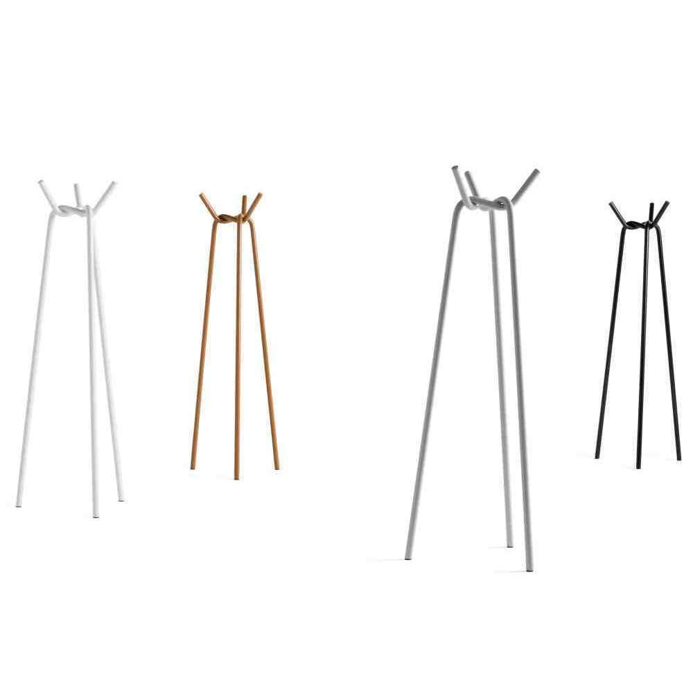 Zaprojektowany przez Japończyka Jin Kuramoto, Knit to prosty i kultowy wieszak o charakterystycznym rzeźbiarskim designie. Składające się z trzech rur stalowych lakierowanych proszkowo, które są ze sobą połączone w sposób trójwymiarowy, są one bezpiecznie „splecione” razem, aby wspierać się nawzajem i wzmacniać korpus. Zainspirowany wrażeniami dotykowymi związanymi z dotykaniem materiałów oraz eksperymentalnymi procesami gięcia i dziania lin i metalowych prętów, Knit został opracowany jako rozszerzenie garderoby i opcji wieszania odzieży HAY w płaskiej konstrukcji, która jest łatwa w montażu. Dzięki wykończeniu o wysokim połysku, które tworzy lśniący efekt, dzianina może być używana do dodawania funkcjonalności i wizualnego zainteresowania korytarzami, sypialniami i innymi obszarami prywatnymi lub publicznymi.