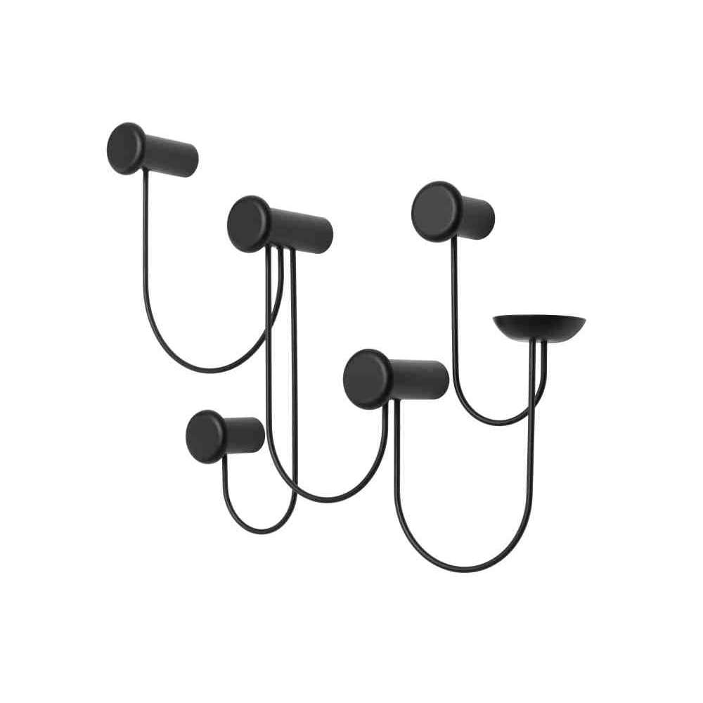 Inspirująca instalacja. PINA to naścienny wieszak na ubrania, który absolutnie przyciąga wzrok. Zaprojektowany przez Laurenta Batisse'a, od razu przywodzi na myśl serię kroków tanecznych o mocnym, zabawnym charakterze. Haczyki na płaszcze są wykonane z pudru powlekanej stali, podobnie jak łączące je łuki. Zainspirowane formą skakanki łuki zapewniają dodatkową pojemność, aby pomieścić ubrania na wieszakach.