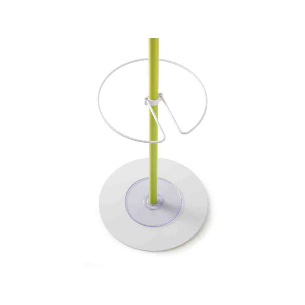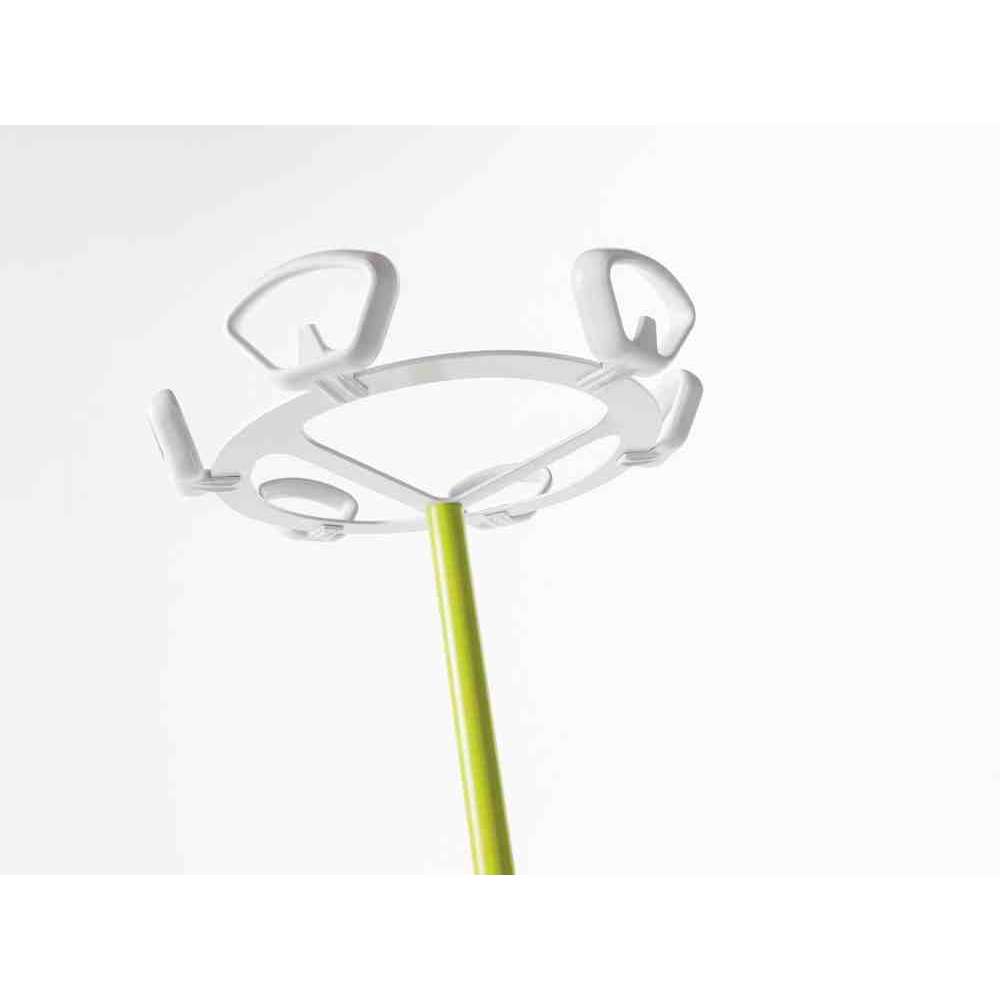 Konstrukcja misternie wykończonej główki dodaje odrobinę zwiewnej lekkości. Eleganckie, gładkie haczyki umożliwiają wieszanie odzieży wierzchniej bez wyrywania jej z kształtu. Druciany pierścień parasola, zabawne przypomnienie linoskoczków, podkreśla harmonijny kształt. Duża podstawa zapewnia doskonałą stabilność.