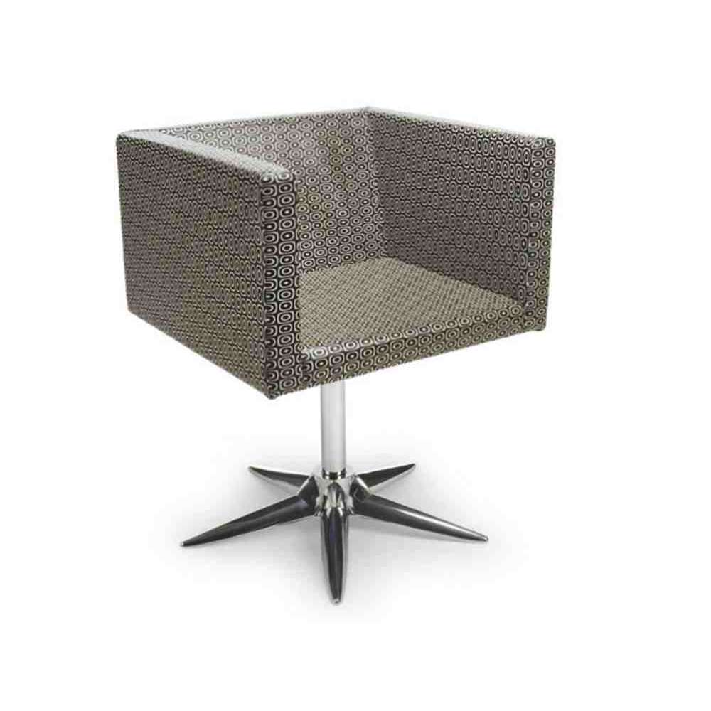Kubika Parrot to krzesło obrotowe z podstawą z polerowanego aluminium z pompką i blokiem. Drewniana konstrukcja wyściełana żywicą poliuretanową, tapicerowana winylem. Wyprodukowane we Włoszech.