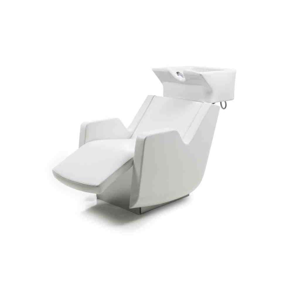 Szampon z uchylną miską (dostępna w kolorze białym lub czarnym ceramicznym), z siedziskiem w pozycji półleżącej i elektrycznym podnóżkiem + system masażu „Air-Shiatsu” dla oparcia/siedziska/podnóżka. Kwadratowa miska.