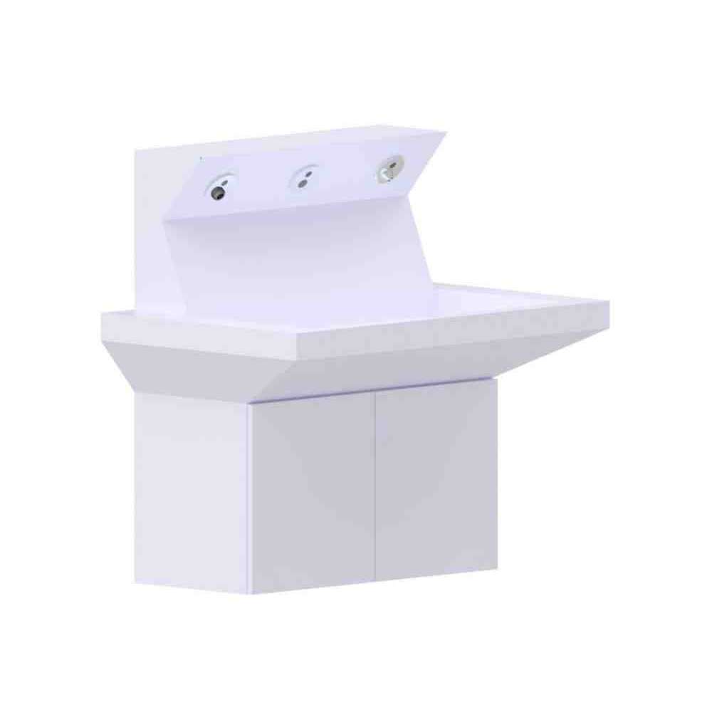 Wielofunkcyjna umywalka ścienna serii 4ALL LIGHT, wykonana z Solid Surface, zintegrowana z kranem elektronicznym, dozownikiem mydła i suszarką; ze sterowaniem na podczerwień i zasilaniem 230V