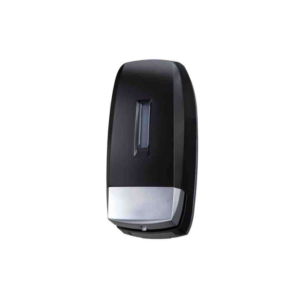 Dozownik mydła w płynie z czarnego ABS z przyciskiem. System zapobiegający upadkom. Bezpieczeństwo.