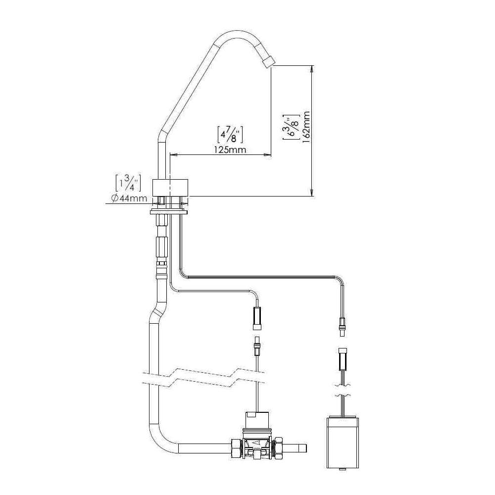 Chłodny — Dotykowy, samozamykający się elektroniczny kran do napełniania butelek. Z oświetleniem pierścieniowym LED. Do wody zimnej lub wstępnie zmieszanej. Filtr w zestawie. Napełniacz butelek wyłączy się automatycznie po fabrycznie ustawionym czasie przepływu wynoszącym 15 sekund. Czas wypływu jest regulowany na miejscu.