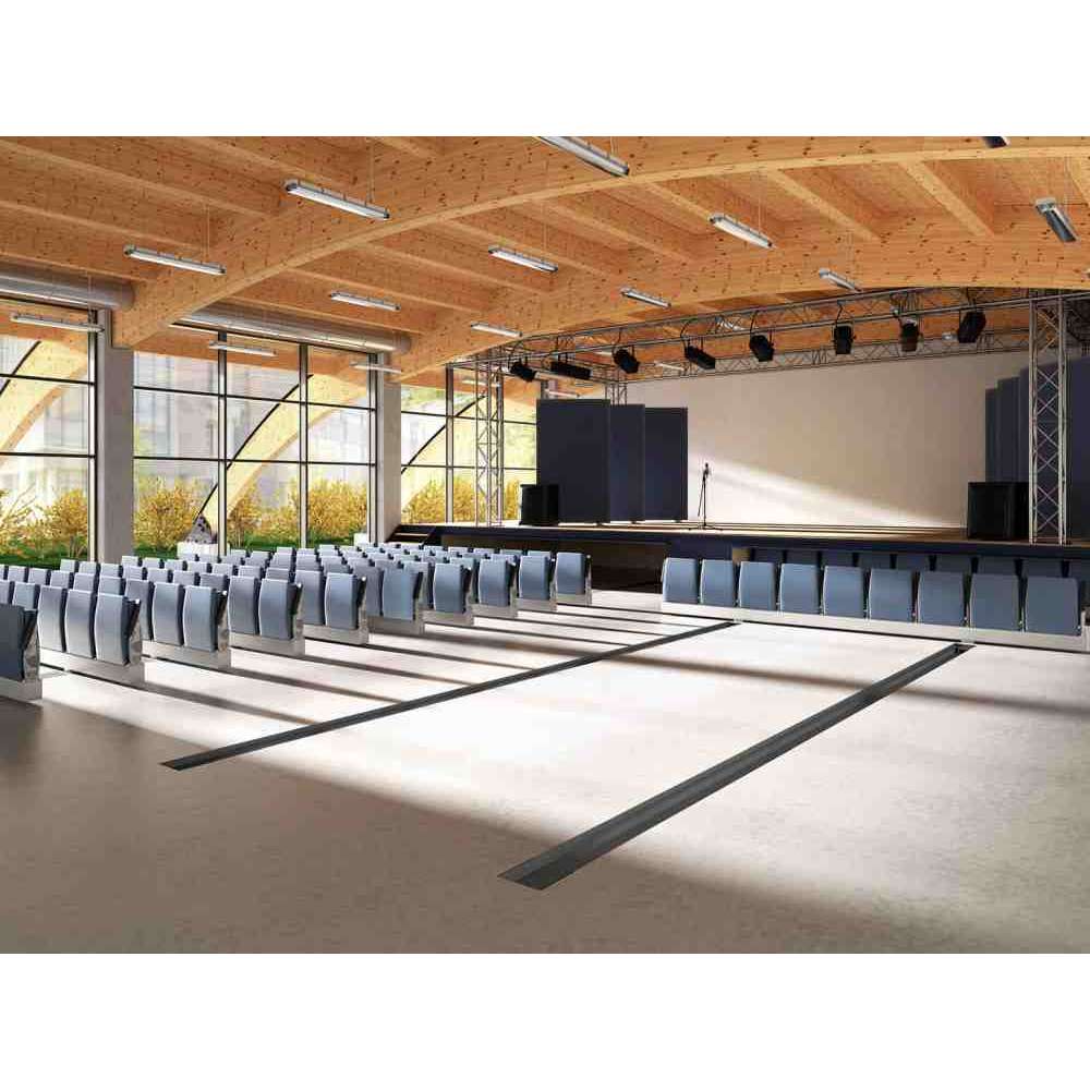 Ten system umożliwia ręczne przesuwanie siedzeń na szynach wbudowanych w podłogę, dzięki czemu można je przenosić i przechowywać pod sceną lub w odpowiednim miejscu pomieszczenia po użyciu. Może być używany z fotelem Futura i dostosowywany do potrzeb projektu.