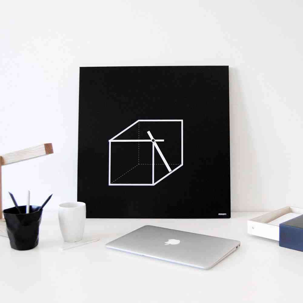 Produkt współpracy między studiem Designobject.it i holenderską firmą SEM Design, Cube Clock ustawia biały sześcian na czarnym tle, dzięki czemu dwa razy dziennie, o 1:45, wskazówki uzupełniają Trójwymiarowy wygląd postaci – może to podstawowy dodatek do domu, ale bynajmniej nie zwykły.