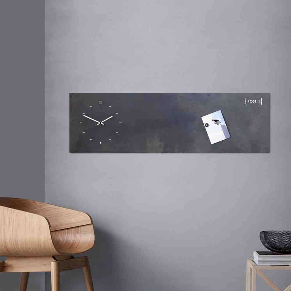Magnetyczny zegar tablicowy Post-it Ferro Nero składa się z wyciętej laserowo czarnej blachy stalowej, ręcznie sitodrukowanej.