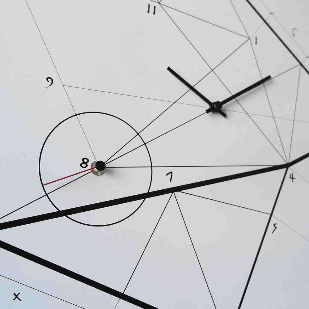 Zegar ścienny Timeline daje pojęcie o „względności” poprzez swój oryginalny projekt. Czas jest czymś niezwykle dynamicznym i można go mierzyć za pomocą ustalonych kodów. W Timeline Contemporary Geometric Clock przerwana linia usiłuje wyrwać się z powierzchni zegara, ale jest uwięziona przez sieć kropek.