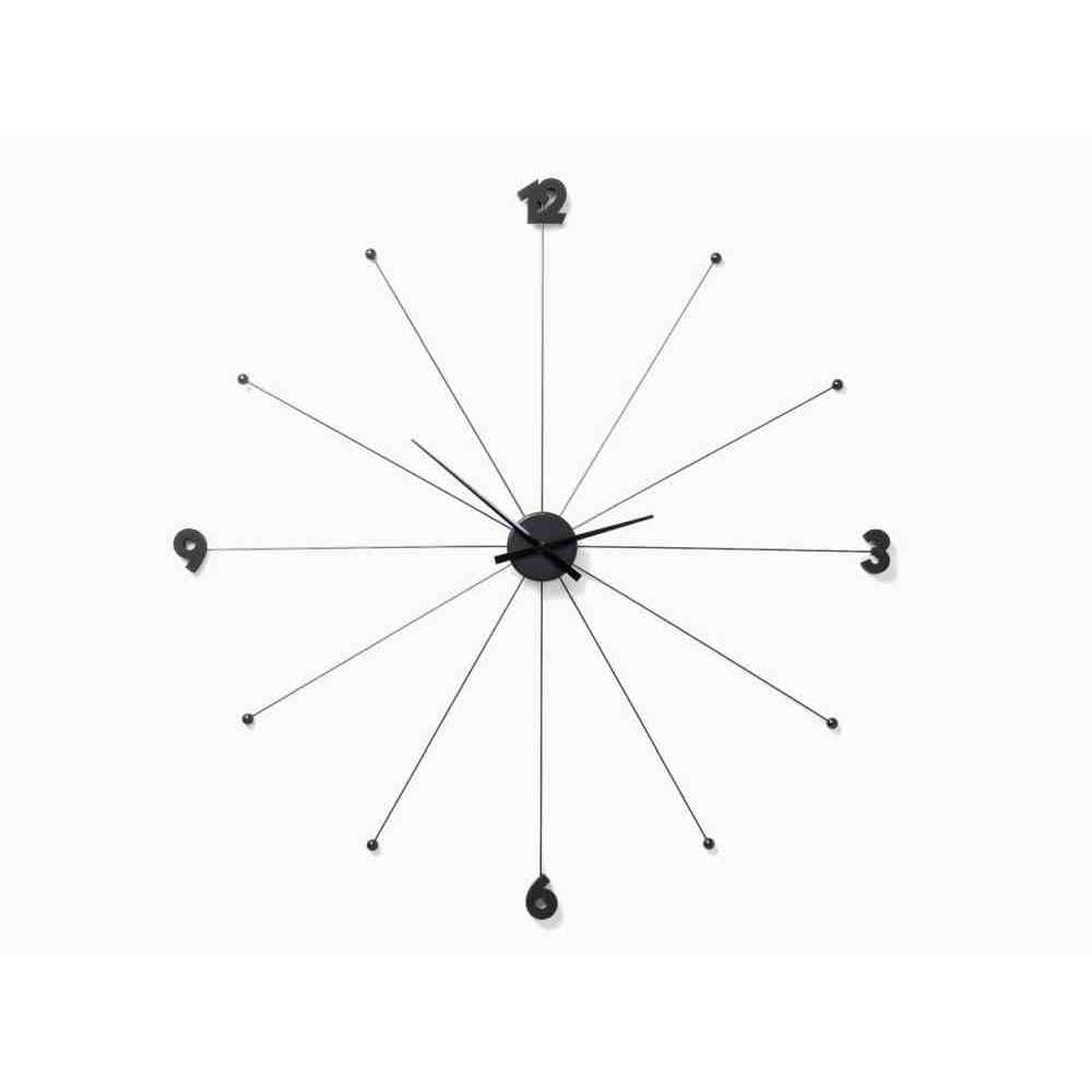 Ale dzięki ekskluzywnemu wyglądowi ta dekoracja ścienna przeszła długą drogę od skromnego parasola. Oryginalna koncepcja projektowa zyskała arystokratyczny charakter dzięki swojej filigranowej, czarnej prostocie. Dzięki szprychom ten zegar nie robi przytłaczającego wrażenia innych zegarów tej wielkości. Szczególnie efektownie prezentuje się na dużej białej ścianie. Montaż i mocowanie są dziecinnie proste. Zegar można szybko i łatwo zmontować.