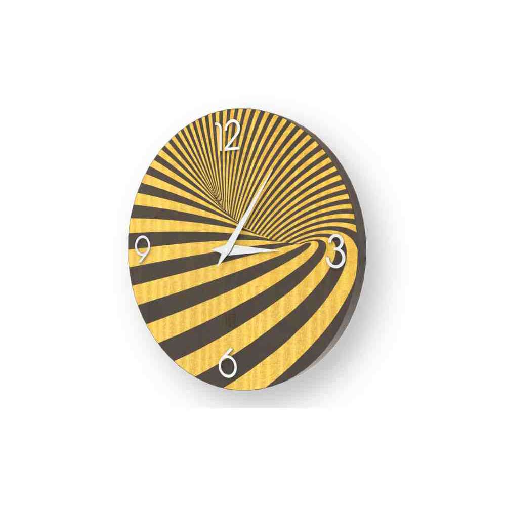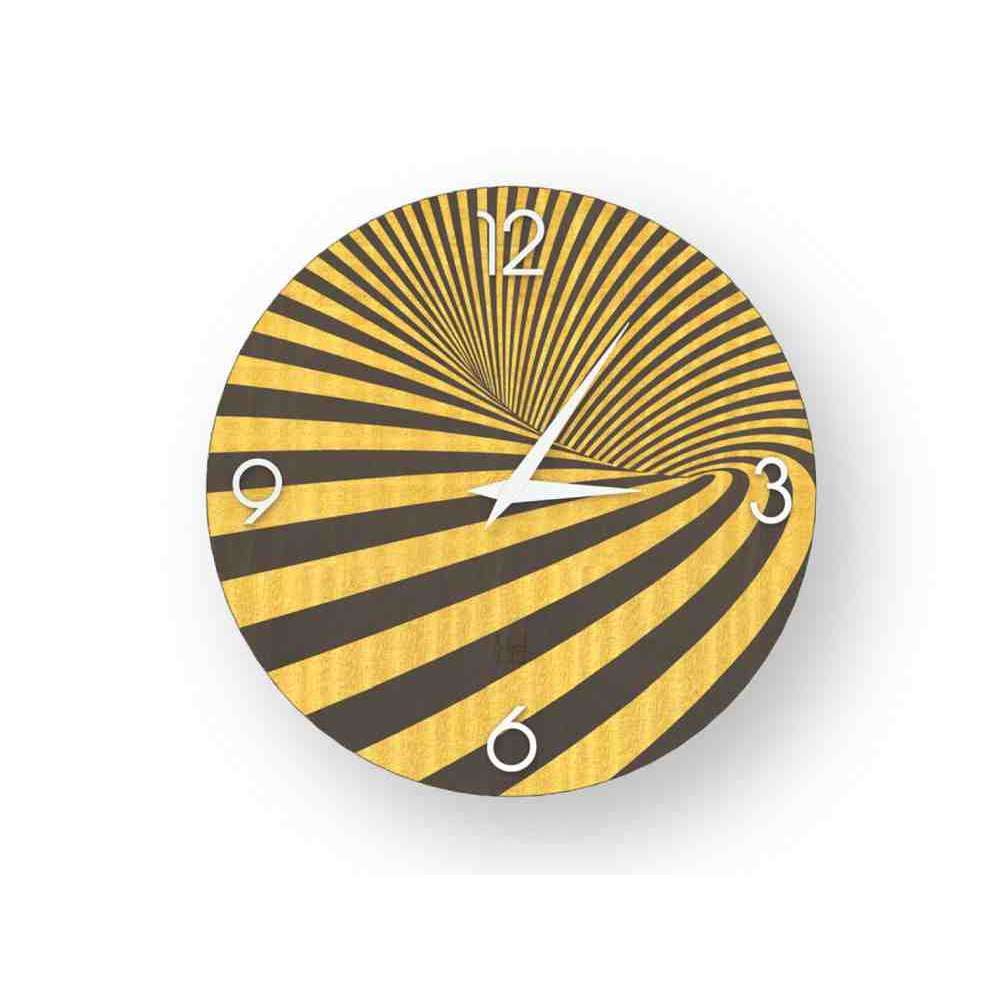 Zegar ścienny wykonany z inkrustowanego drewna Lignis OPTICAL COLORS